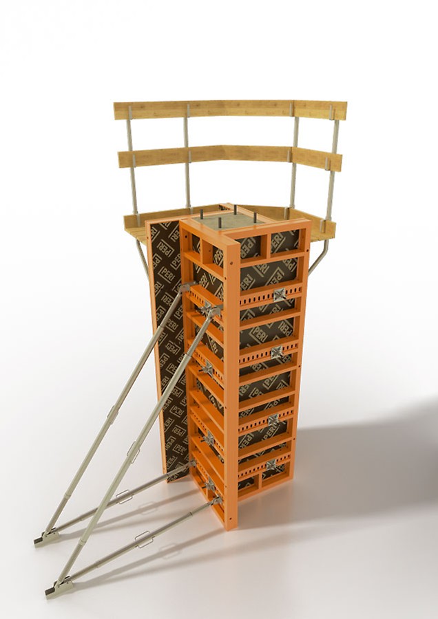 Վերելակների հորանների կաղապարամածներ։TRIO ST համակարգի կաղապարամածահանման անկյունը նախատեսված է վերելակների հորանների կաղապարամածների հանումը արագացնելու և կաղապարամածները բետոնալցման նոր աշխատանքամաս տեղափոխելու։ Ապամոնտաժման համար անհրաժեշտ է պտտել կաղապարամածահանման անկյունները, որպեսզի առաջանա 3 սմ համակողմանի բացակ։ Դրանից հետո, հորանի ներքին կաղապարամածները որպես միասնական կոնստրուկցիա տեղափոխում են մեկ ամբարձմամբ։